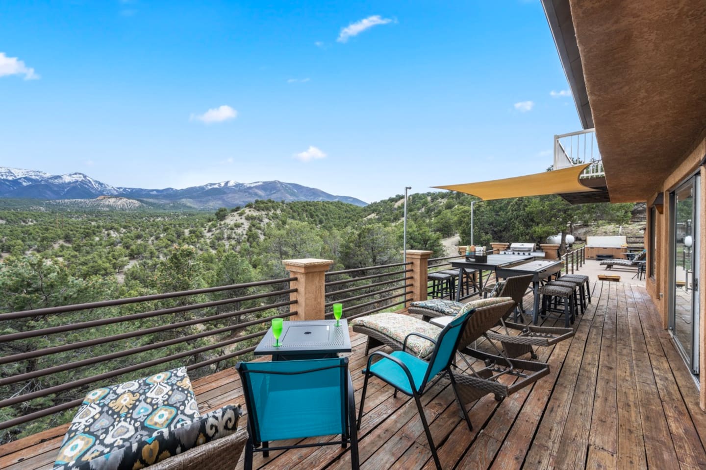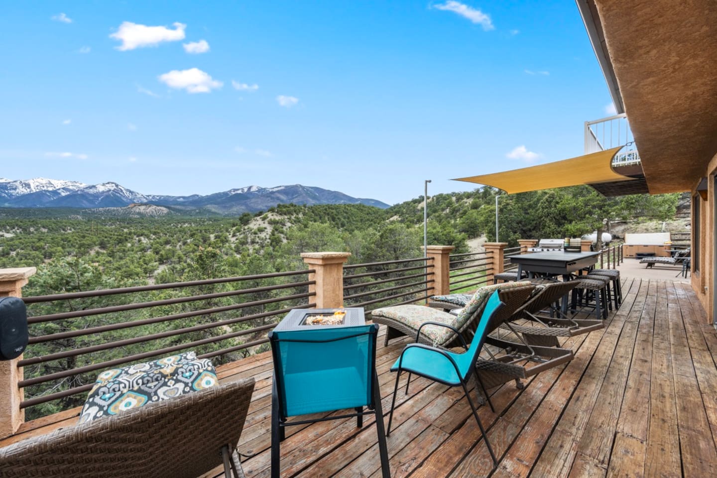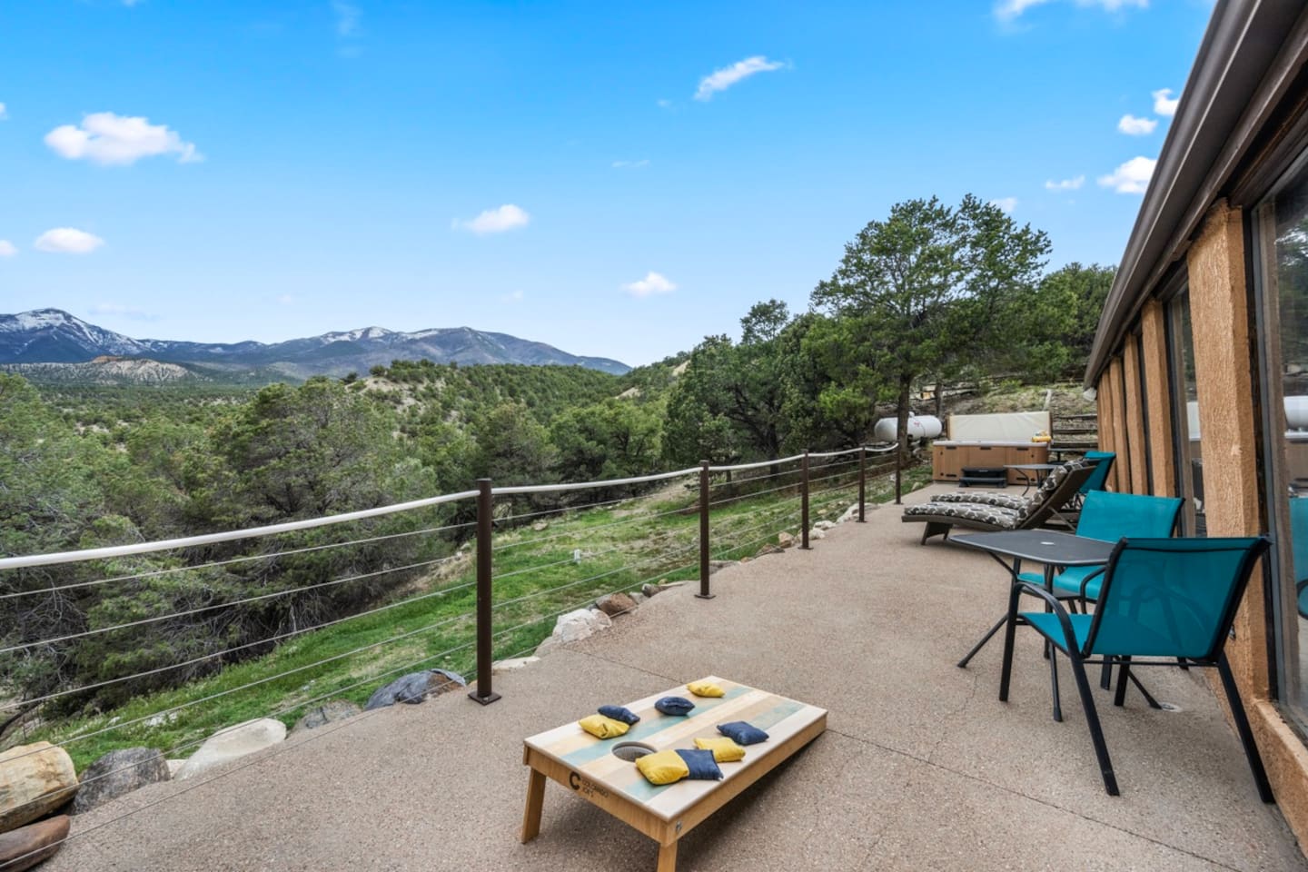 Experience serene mountain living at Katalyst Ranch, a charming 4-bedroom retreat in beautiful Salida. Set on a private wooded property, unwind in the hot tub after a day in the snow, gather around the cozy fire pit, grill hearty meals, and enjoy friendly competition in the outdoor game area. Combining rustic elegance, modern comforts, and easy access to local winter adventures, it’s your perfect Colorado winter escape.